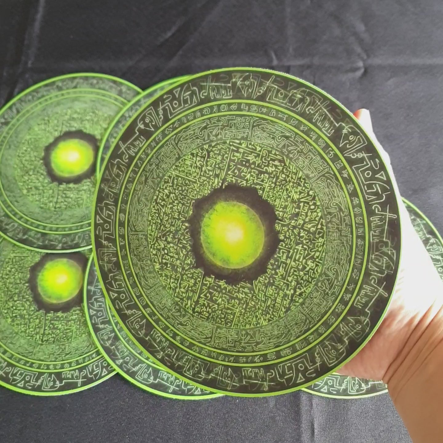 A mysterious green magical circle surrounded by animated runes. Ideal for fantasy battles, dark rituals, or cursed objective zones.